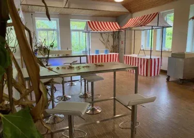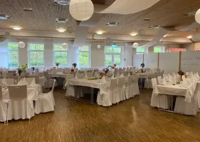 Sitzplätze: max. 150 Personen Bühne/Mediaausstattung: Musikanlage mit 2 Boxen und Aktivständern, Parkplätze: für bis zu 300 PKW, kostenfrei und befestigt